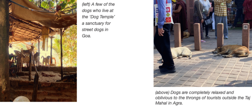 Of course, India’s street dogs aren’t simply pet dogs that have been abandoned—although that happens as well. Most of the dogs you might see have been “on the streets” for generations. Because of that, they are more street savvy than pet dogs would be. They know where to look for food. They know how to cross a street (something that took days for the humans on the tour to learn how to do with confidence), and they know how to keep to their own territory. They also display impressive levels of resiliency.