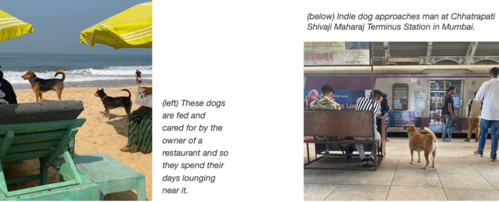 Even when the Indies saw leashed pet dogs or neighbouring Indies passing through or near their territories, they might growl or bark a warning but I didn’t see any conflict between dogs that escalated to the point of bloodshed. Most times there wasn’t even contact. This could be true in other countries as well, but I haven’t got enough experience to speak to anywhere else. In India though, there is a noticeable culture among people of recognizing animals’ place in the world and making less of an attempt to control it and more of an attempt to tolerate it.